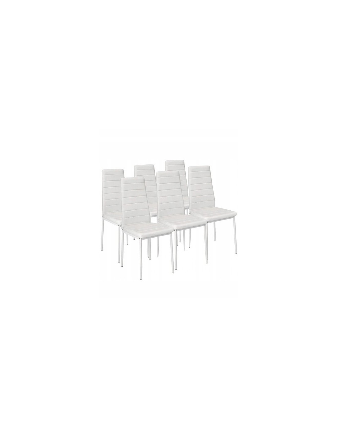 Wyjątkowo elegancki i niezwykle praktyczny zestaw stołowy sprawdzi się w klasycznych oraz nowoczesnych kuchniach lub jadalniach. Prostota wykonania to uniwersalna cecha, dzięki którym zestaw z powodzeniem sprawdzi się w różnych aranżacjach. Cechą wyróżniającą zestawu jest solidne i trwałe wykonanie. Zestaw składa się z prostokątnego stołu i 6 solidnych krzeseł. Stół wykonany jest z płyty MDF. W krzesłach zastosowano klasyczny stelaż wykonany z metalu w kolorze białym, tapicerowany ekoskórą. Zestaw ten zwróci uwagę klientów ceniących uniwersalne i bardzo funkcjonalne rozwiązania.