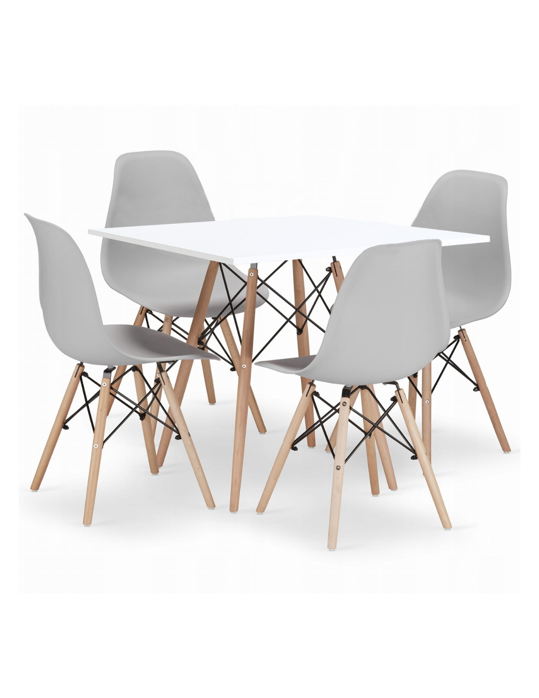 Wyjątkowo elegancki i niezwykle praktyczny zestaw stołowy sprawdzi się w klasycznych oraz nowoczesnych kuchniach i jadalniach, ale też restauracjach, barach i letnich ogródkach. Prostota wykonania to uniwersalna cecha, dzięki którym zestaw z powodzeniem sprawdzi się w różnych aranżacjach. Cechą wyróżniającą zestawu jest solidne i trwałe wykonanie. Zestaw składa się z okrągłego stołu i 4 solidnych krzeseł. Blat stołu wykonany został z lakierowanego MDF -u, nogi stołu są z litego drewna bukowego. W krzesłach zastosowano siedzisko stworzone z wysokiej jakości polipropylenu, które zostało połączone z drewnianymi, bukowymi nogami za pomocą stali malowanej na czarno. Zestaw ten zwróci uwagę klientów ceniących uniwersalne i bardzo funkcjonalne rozwiązania.