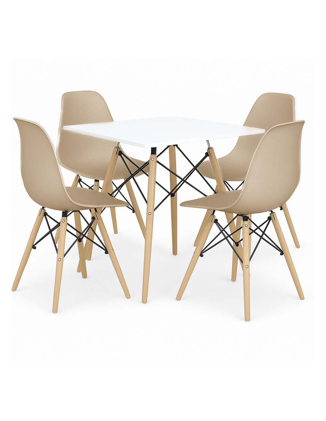 Zestaw stół DSW 80x80 biały 4 beżowe krzesła Milano