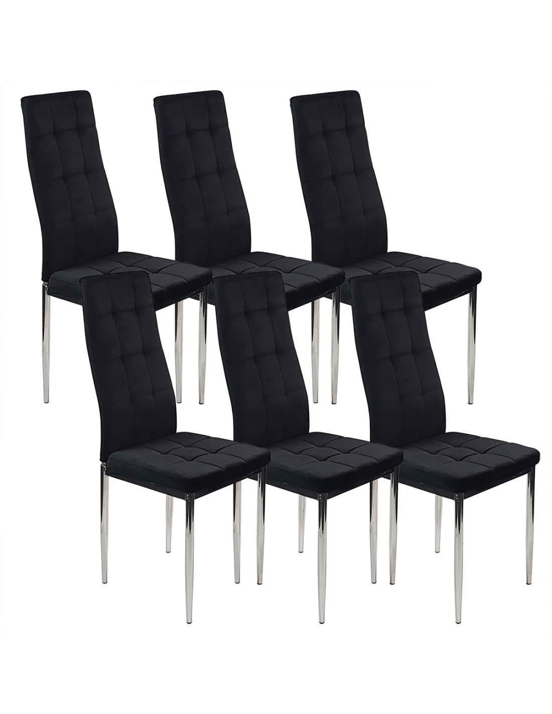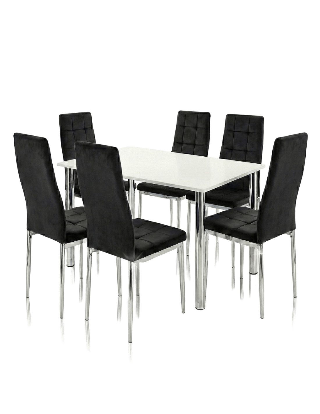 Zestaw stół Lugano 120x80 blat czarny/nogi chrom 6 krzeseł Monako czarnych welur