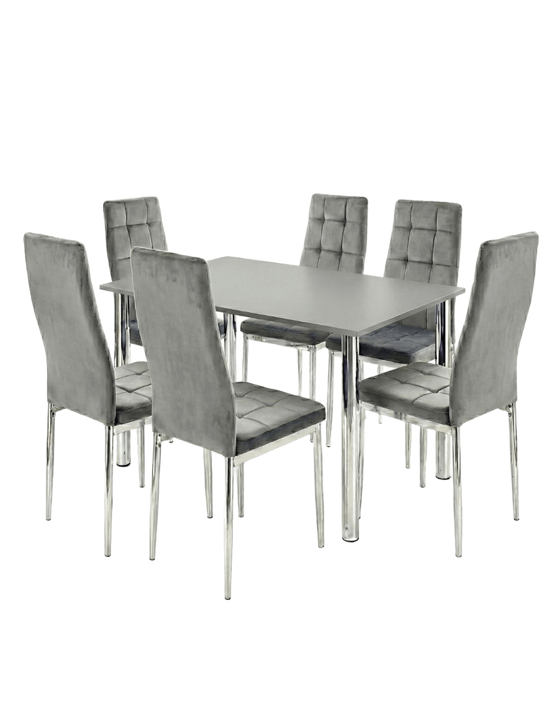 Zestaw stół Lugano 120x80 blat sonoma/nogi chrom 6 krzeseł Monako szarych welur