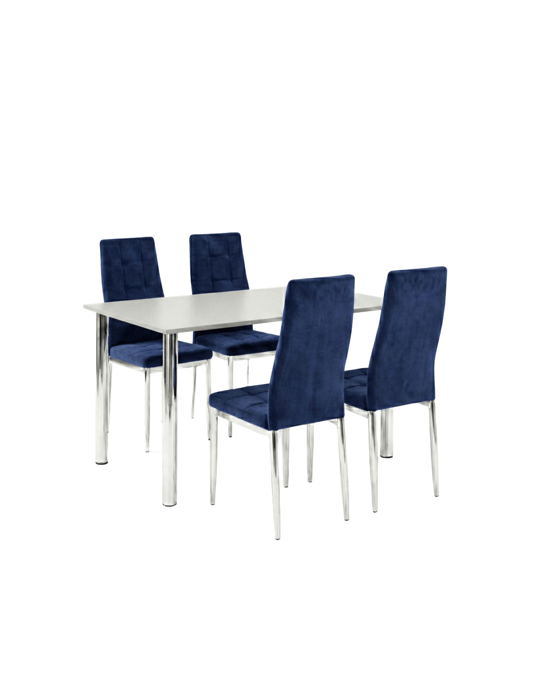 Zestaw stół Lugano 120x80 blat szary/nogi chrom 4 Monako granat welur