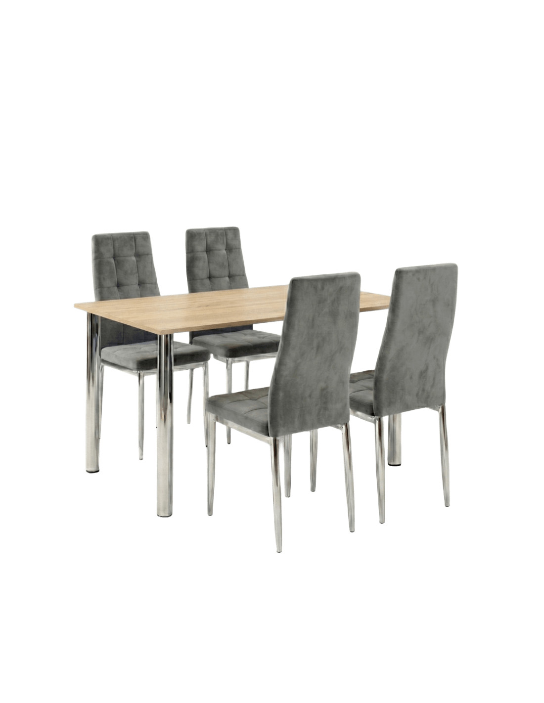 Zestaw stół Lugano 120x80 blat sonoma/nogi chrom 4 Monako szare welur