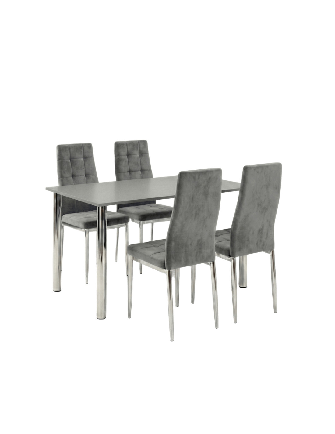 Zestaw stół Lugano 120x80 blat biały/nogi chrom 4 Monako szare welur