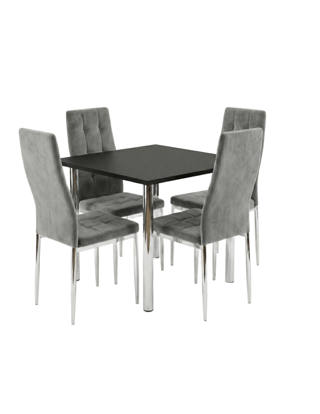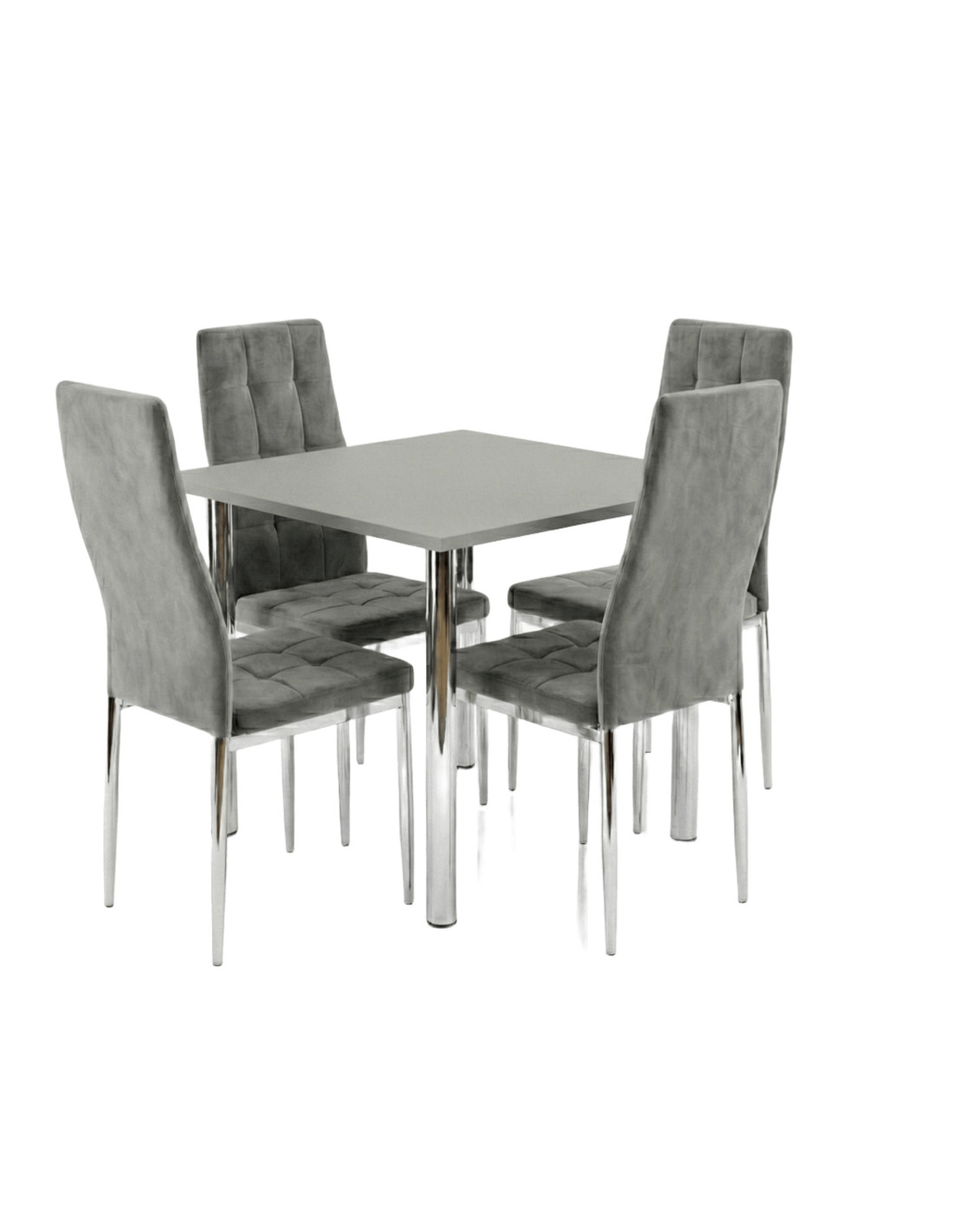 Zestaw stół Lugano 80x80 blat szary/nogi chrom 4 Monako szare welur