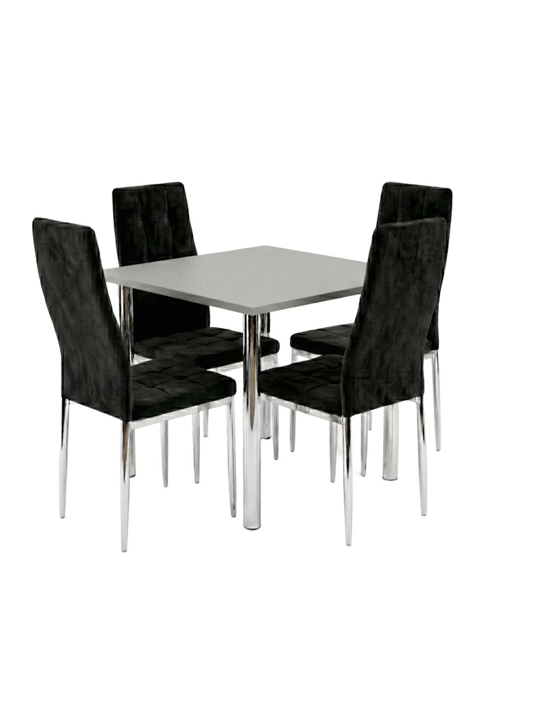 Zestaw stół Lugano 80x80 blat szary/nogi chrom 4 Monako czarne welur