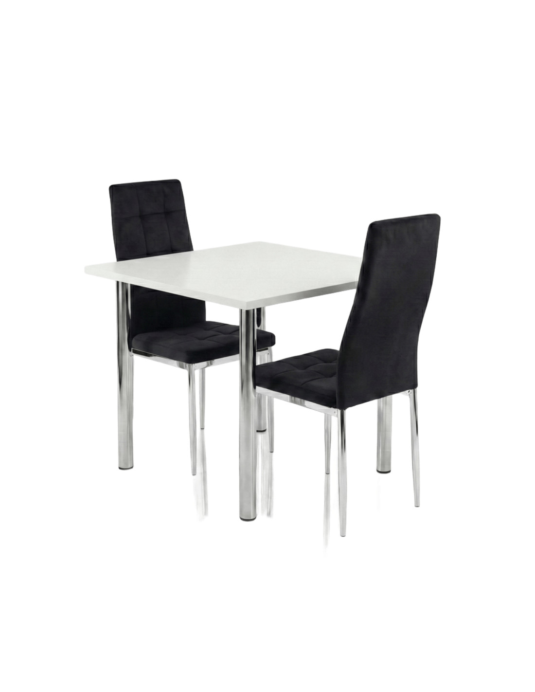 Zestaw stół Lugano 80x80 blat biały/nogi chrom 2 Monako czarne welur
