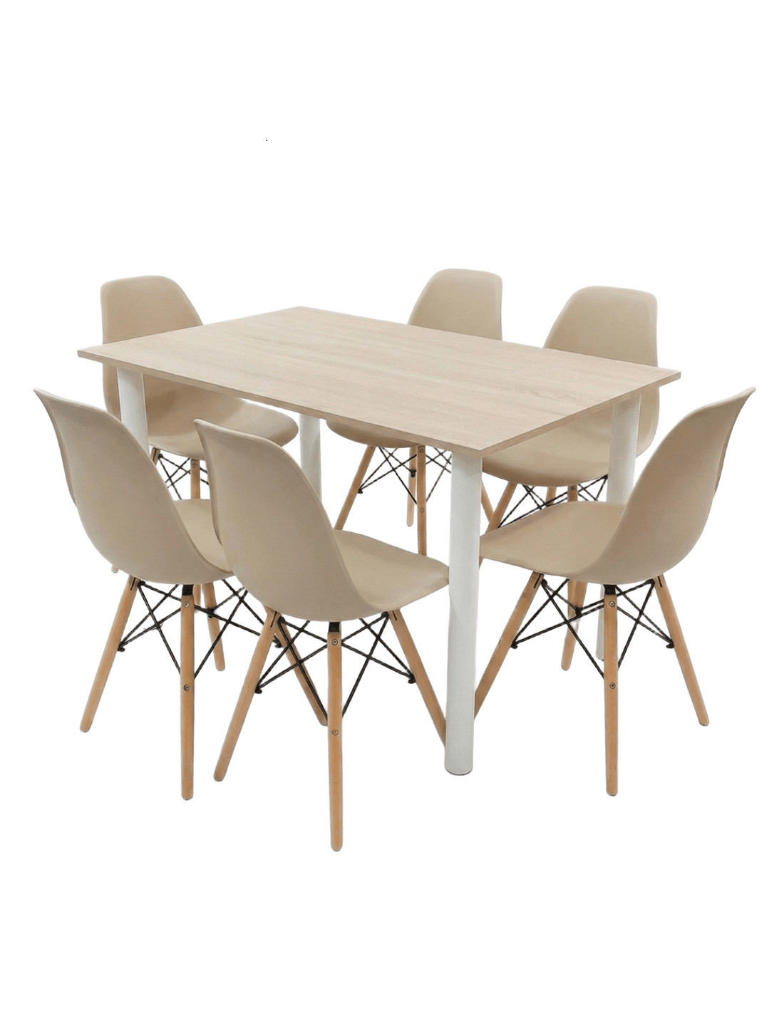 Zestaw stół Lugano 120x80 sonoma/nogi białe 6 krzeseł Milano beżowych
